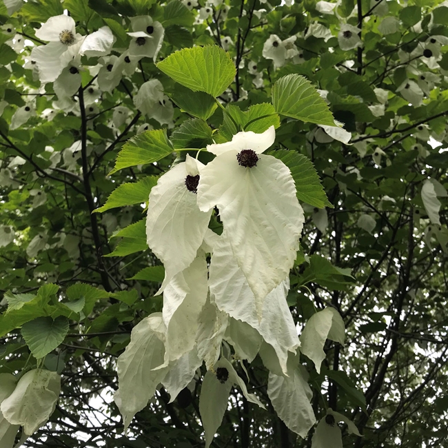 Омерзительную подборку диковинок в честь Хэллоуина завершает добрый дух. Это дерево-призрак давидия, его также называют живым ископаемым, платочным деревом и деревом-голубем. В конце весны – начале лета ветви украшаются большими и нежными белыми прицветниками, окружающими темный центр. Считается, что дерево наполняет людей силой.