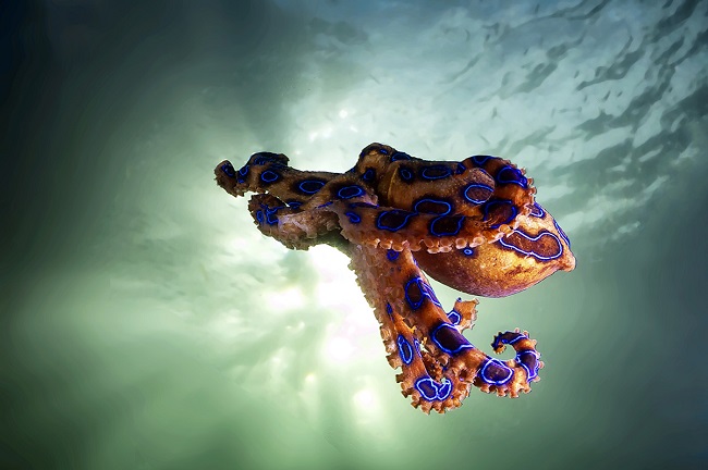 Синекольчатые осьминоги, несомненно, ошеломляют своим внешним видом. Существует по крайней мере четыре вида и все они ядовиты. Когда осьминог чувствует угрозу, его красивые кольца могут менять цвет в качестве предупреждения. Яда одной особи достаточно, чтобы убить 26 взрослых человек за считанные минуты. При этом укусы крошечные и часто безболезненные, многие жертвы даже не понимают, что отравлены, пока не начинается угнетение дыхания и паралич. Известного противоядия от укуса синекольчатого осьминога не существует.