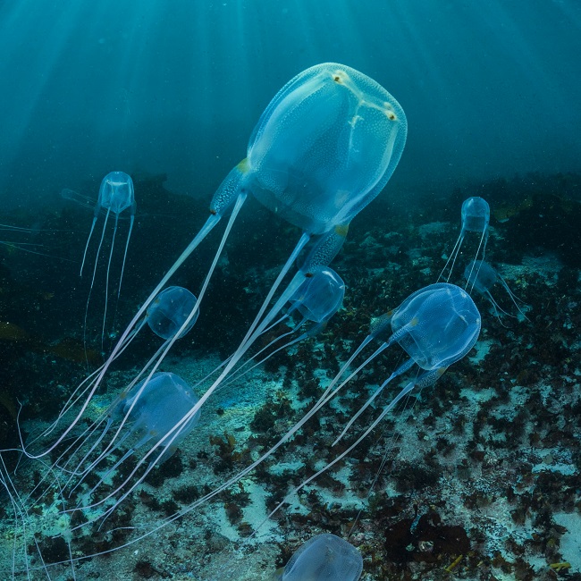 Смертоносные виды кубомедузы или морской осы встречаются в основном в Индо-Тихоокеанском регионе и на севере Австралии. Тело медузы имеет кубическую форму, это завораживающе красивое существо имеет щупальцы, покрытые биологическими ловушками нематоцистами – крошечными дротиками, наполненными ядом. Любой, в чей организм попадает токсин, может испытать паралич и остановку сердца. В течение нескольких минут после контакта почти всегда наступает смерть.