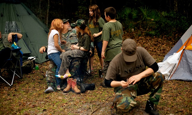 Семья хочет купить семена для своего сада, чтобы вырастить еду, которую можно будет законсервировать и спрятать в подвале. Дети гладят щенков в палатках заводчиков, продающих сторожевых собак, отец с такими же мужчинами обменивается мнениями о лучшем оружии для бункера, мать собирает брошюры о накоплении золота и кризисах международной экономики.