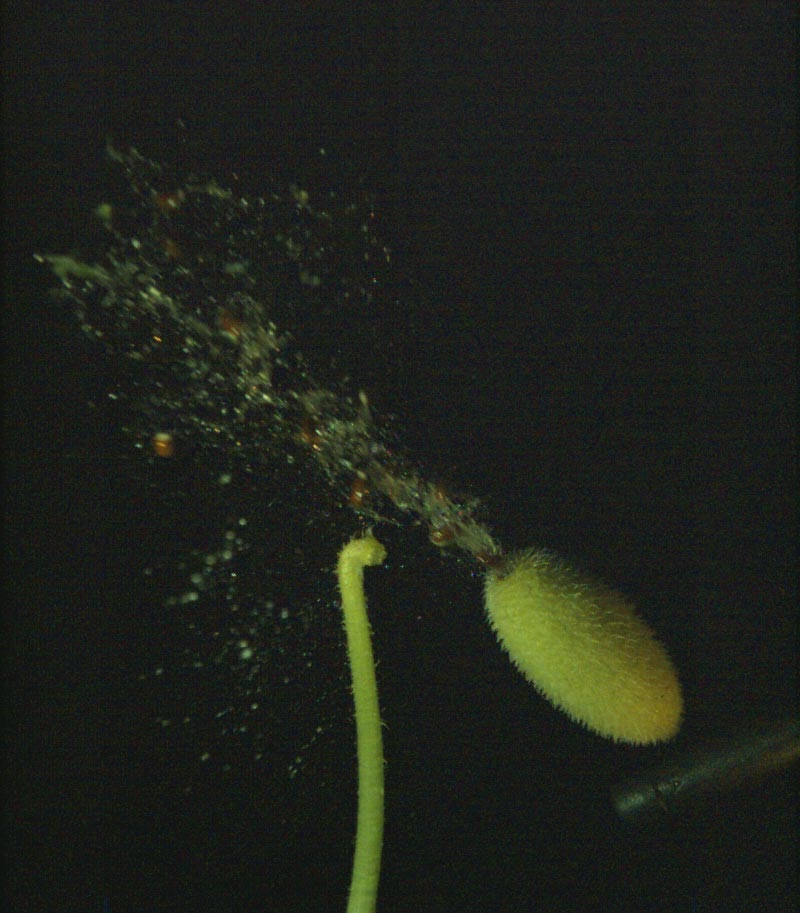 Между тем, уменьшение количества жидкости, перераспределяемой из плода в стебель, привело к чрезмерному давлению на плод, из-за чего семена выбрасывались с большей скоростью, но под почти вертикальным углом вылета. Следовательно, семена не были бы рассеяны достаточно далеко от родительского растения, и немногие выжили бы.
