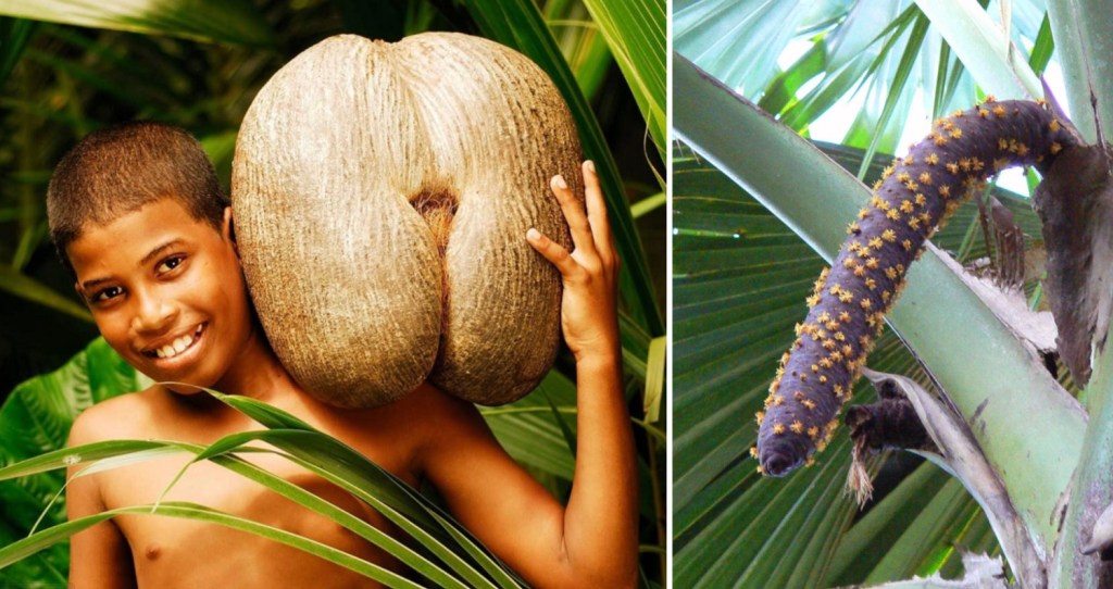 Научное название сейшельской пальмы Lodoicea Maldivica. Растение дает огромные плоды длиной до полуметра и весом двадцать килограммов и более. Один из самых крупных обнаруженных плодов весил 42 килограмма.