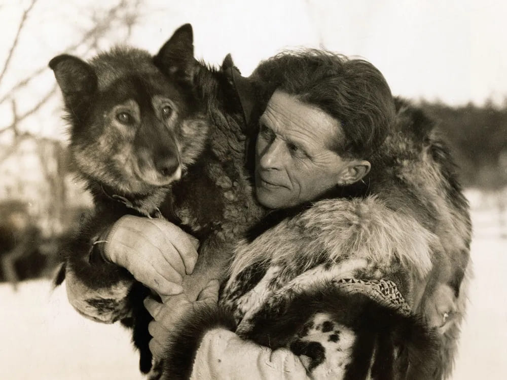 Леонард Сеппала обнимает Того, 1925 год