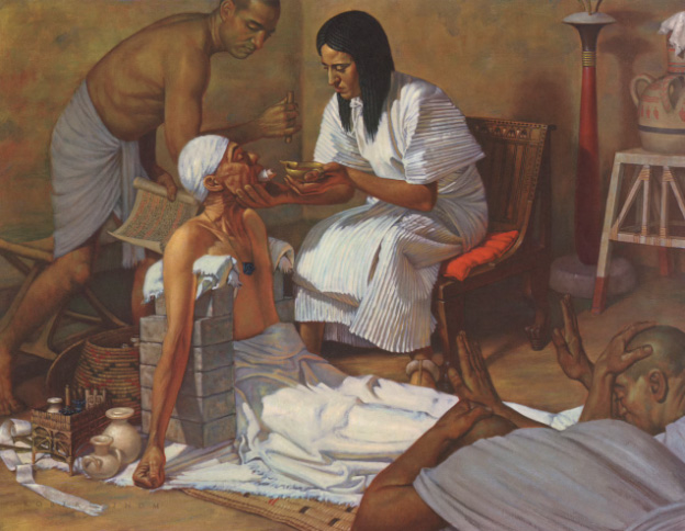 Египтяне были более искусными: они первыми поняли анестезирующую силу холода и использовали замороженную воду и снег, чтобы снизить чувствительность разрезаемой части тела. Для ампутации использовался мелфианский камень — горная порода, богатая силикатами, которая, как считалось, могла снизить чувствительность оперируемой области.