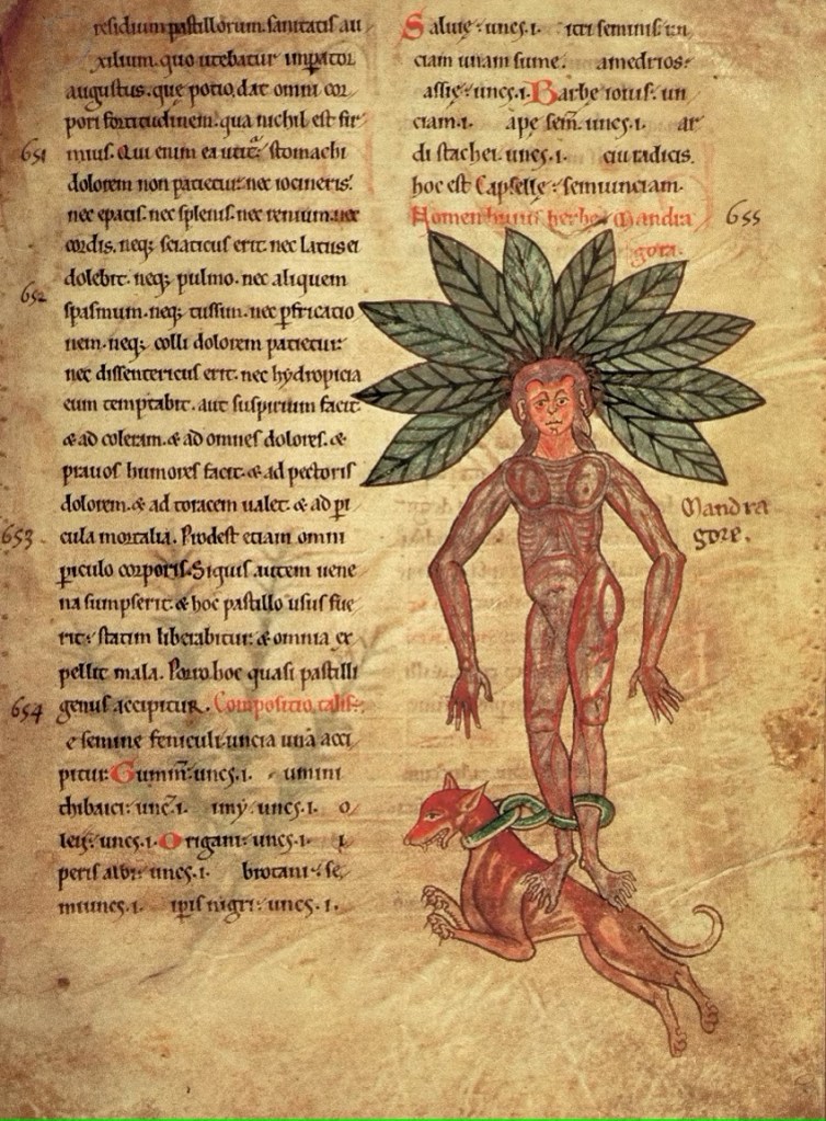 Причудливая форма корня, напоминающая человеческое тело, и его анестезирующее действие способствовали созданию почти магической ауры вокруг растения. Его считали существом, находящимся на полпути между растительным и животным мирами, и, помимо анестезирующего действия, его использовали как афродизиак и при лечении бесплодия.