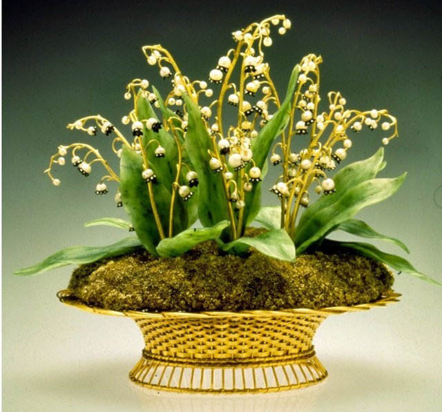В конце XIX века ландыш стал одной из постоянных тем в изделиях фабрики Фаберже, особенно из-за того, что эти цветы и их аромат очень любила императрица Александра Федоровна.