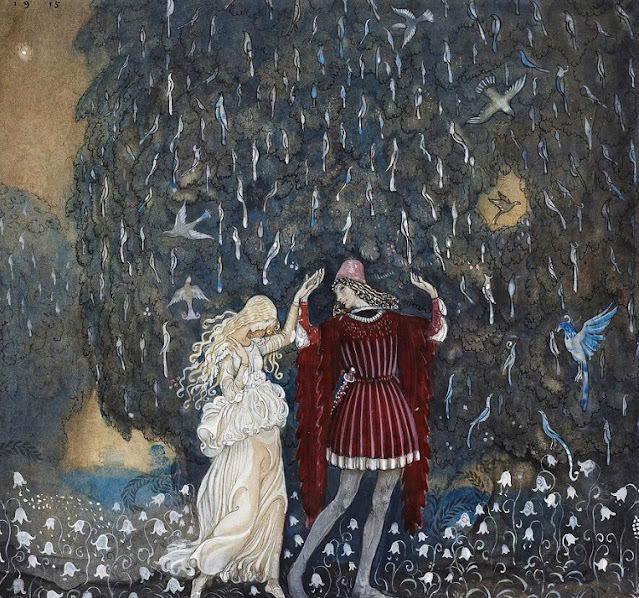 В новгородских былинах о герое Садко тоже есть сюжет с ландышами. В старину рассказывали, что водяная царевна Волхова полюбила купца-гусляра и, узнав, что он любит другую, вышла на берег, чтоб в последний раз послушать песни возлюбленного. Увидев в лунном свете силуэты Садко и Любавы, Волхова разрыдалась и решила навсегда спрятаться в водном царстве, а ее слезы, упавшие в траву, превратились в цветы, символизирующие и любовь, и боль.