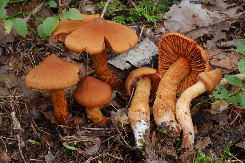 Хотя омфалот встречается очень редко, он заслуживает своего места в этом списке из-за сходства с лисичкой. Это ярко-оранжевый гриб с настоящими пластинками (а не ложными, как у лисички), спускающимися вниз по ножке.