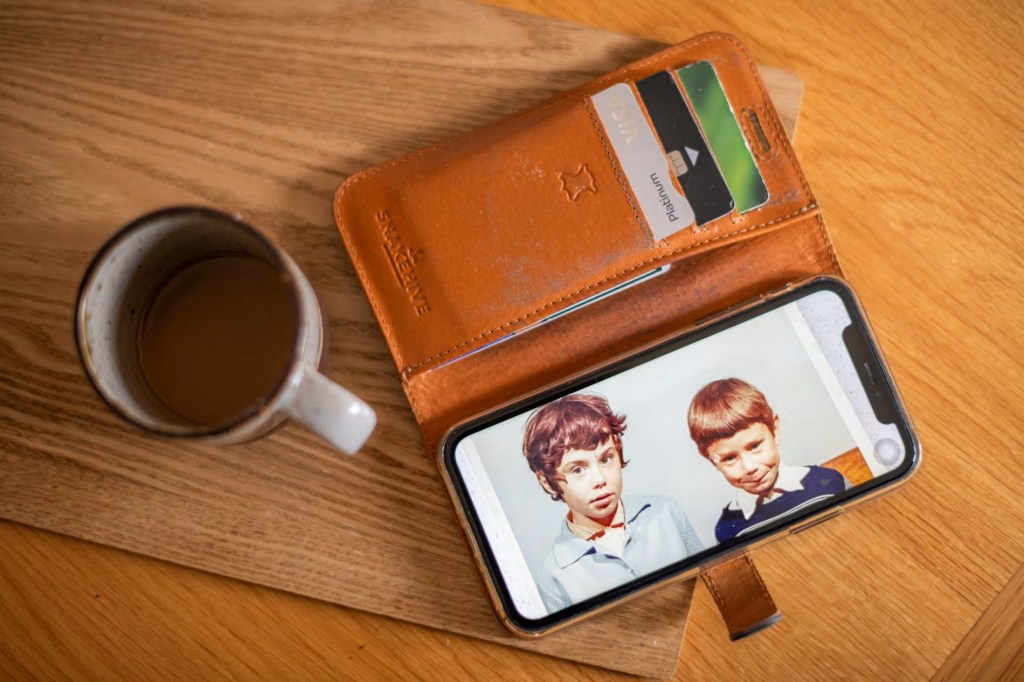 Фотография на телефоне Бриджит Батчер, на которой изображена она сама (слева), ей шесть лет, и Кевин, которому четыре года