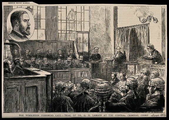 Ламсона судили в уголовном суде Олд-Бейли в марте 1882 года. Он был признан виновным в убийстве с целью получения доли родственника в наследстве в размере порядка 3000 фунтов стерлингов (примерно, 383 000 фунтов сейчас). Как оказалось, о свойствах аконитина он узнал от своего преподавателя, профессора Роберта Кристисона из Эдинбургского университета. Кристисон упоминал, что этот алкалоид невозможно обнаружить в теле, однако криминалистика со студенческих времен Ламсона сильно шагнула вперед, и яд был идентифицирован.
