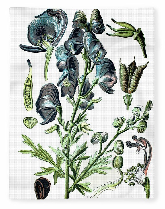 Честно говоря, не припомню, чтоб в одном произведении так часто упоминались отравления, еще и конкретным ядом. Борец или аконит — многолетнее травянистое растение из семейства лютиковых с очень красивыми цветками. В народе его также называют борец-корень, волчий корень, волкобой, царь-зелье, царь-трава, черный корень, черное зелье, козья смерть, железный шлем, шлемник, каска, капюшон, лошадка, туфелька, лютик голубой, синеглазка, прострел-трава», прикрыш-трава.
