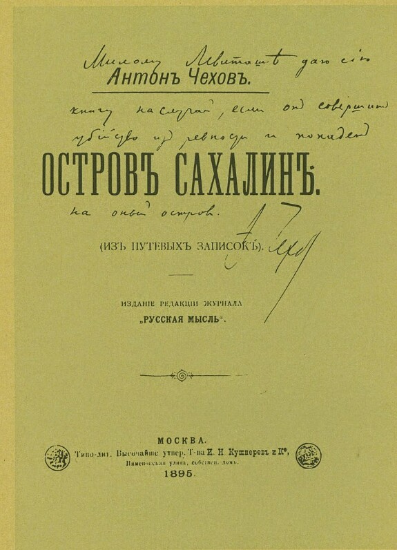 Чехов прожил на Сахалине несколько месяцев, за которые успел проделать колоссальную работу. Он много общался с людьми, изучал их истории и причины ссылки. В итоге все это стало богатейшим материалом для книги «Остров Сахалин», которую он будет писать следующие пять лет и сначала опубликует частями в «Русской мысли» и отдельным изданием в 1895 году. Тема книги вызвала немалый интерес у публики, видимо, из-за острой каторжанской темы, да и в целом она довольно всеобъемлюще рассказывает о богом забытом кусочке суши на периферии страны. В изданиях даже появились опровержения чиновников, которым надо было как-то комментировать неприглядную правду. Было довольно забавно и очень по-российски.
