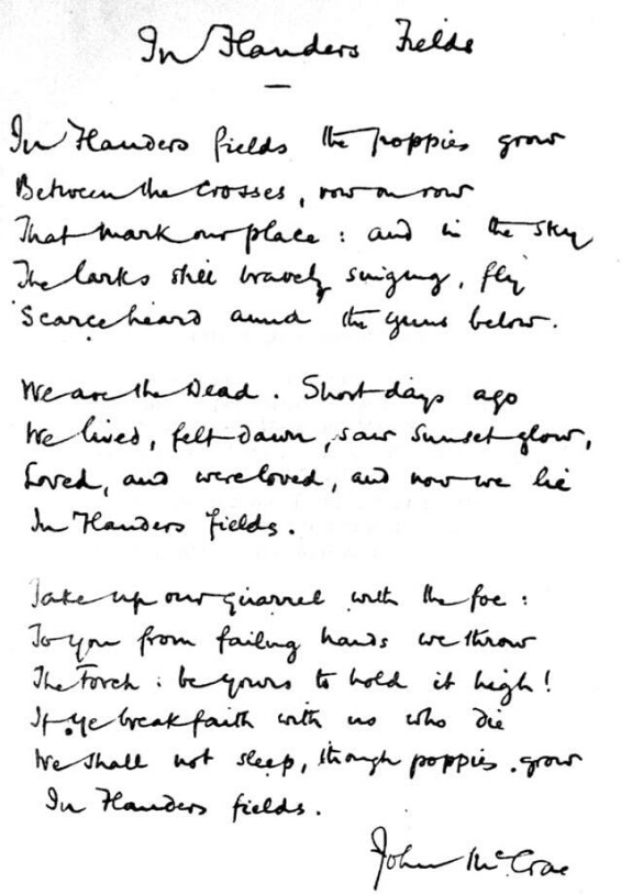 Сегодня стихотворение и символический красный мак ассоциируются с Днем памяти в Канаде, который отмечается 11 ноября. С 1921 года в конце октября в стране начинается маковая кампания, когда цветы носят на одежде. В рамках акции маки раздаются бесплатно, но приветствуются пожертвования, которые используются для поддержки семей ветеранов, больниц и так далее.